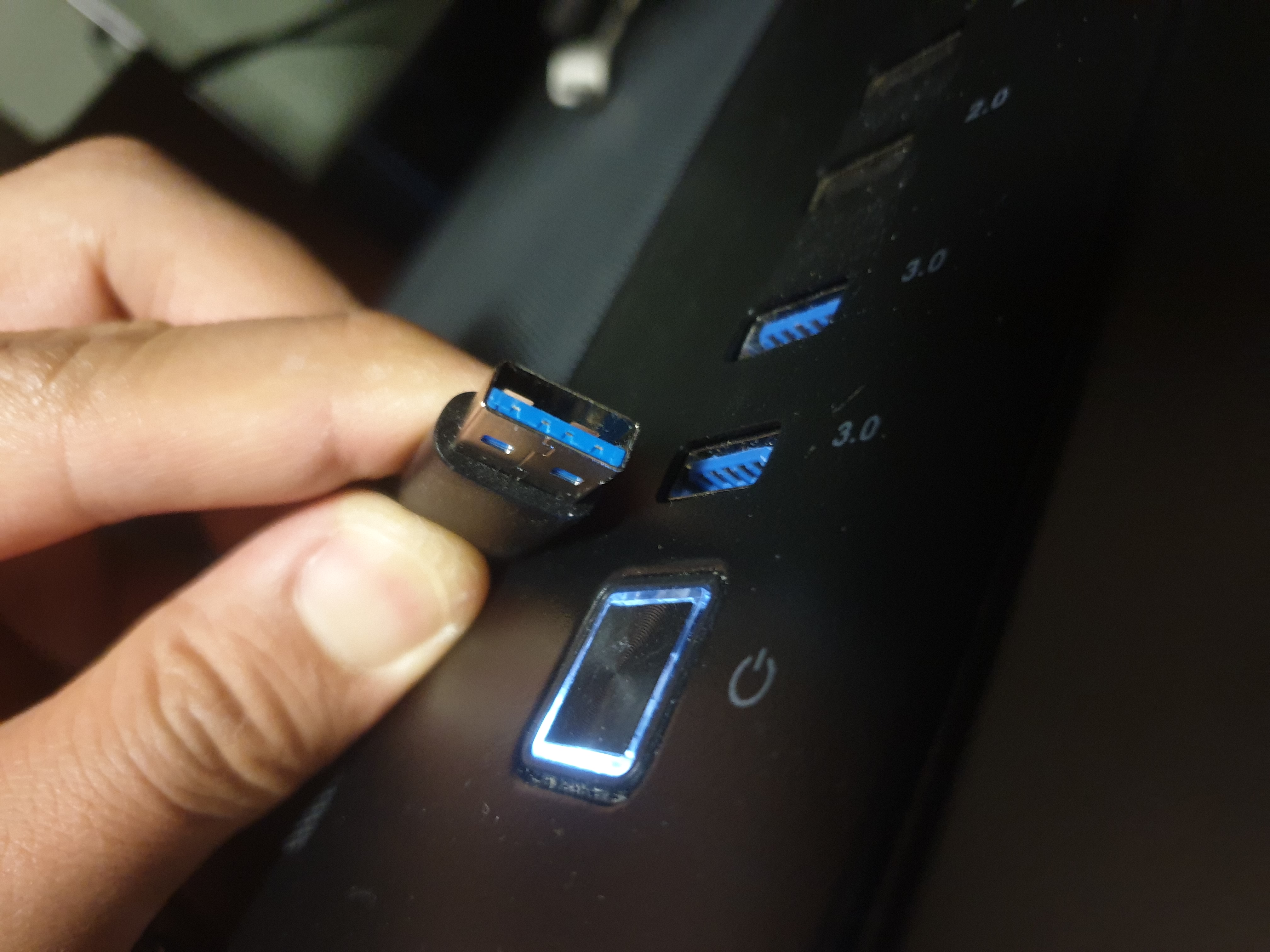장치쪽의 USB 연결방식은 USB3.1. 그 상단부는 전원버튼. 아래쪽엔 전원 케이블.