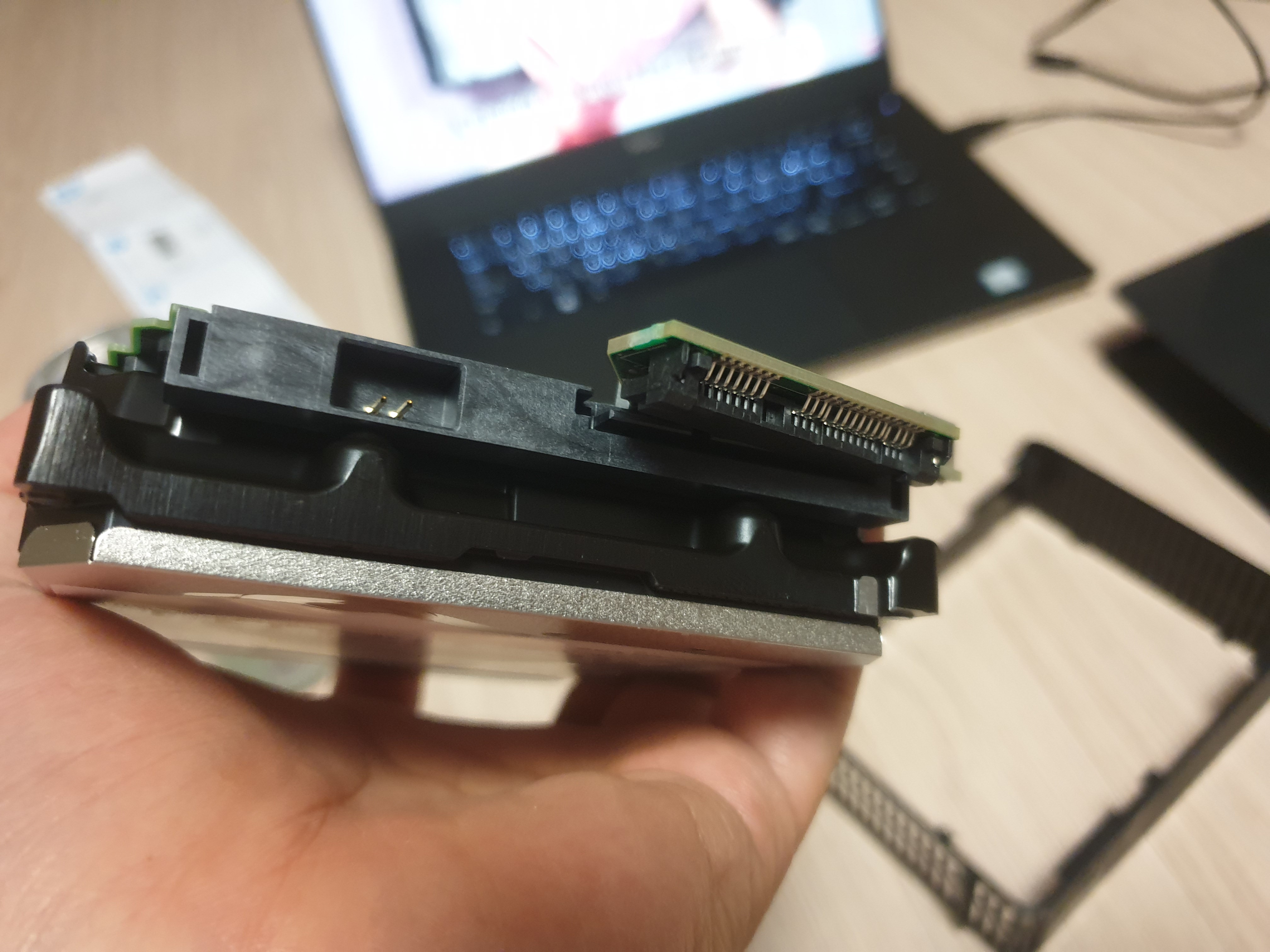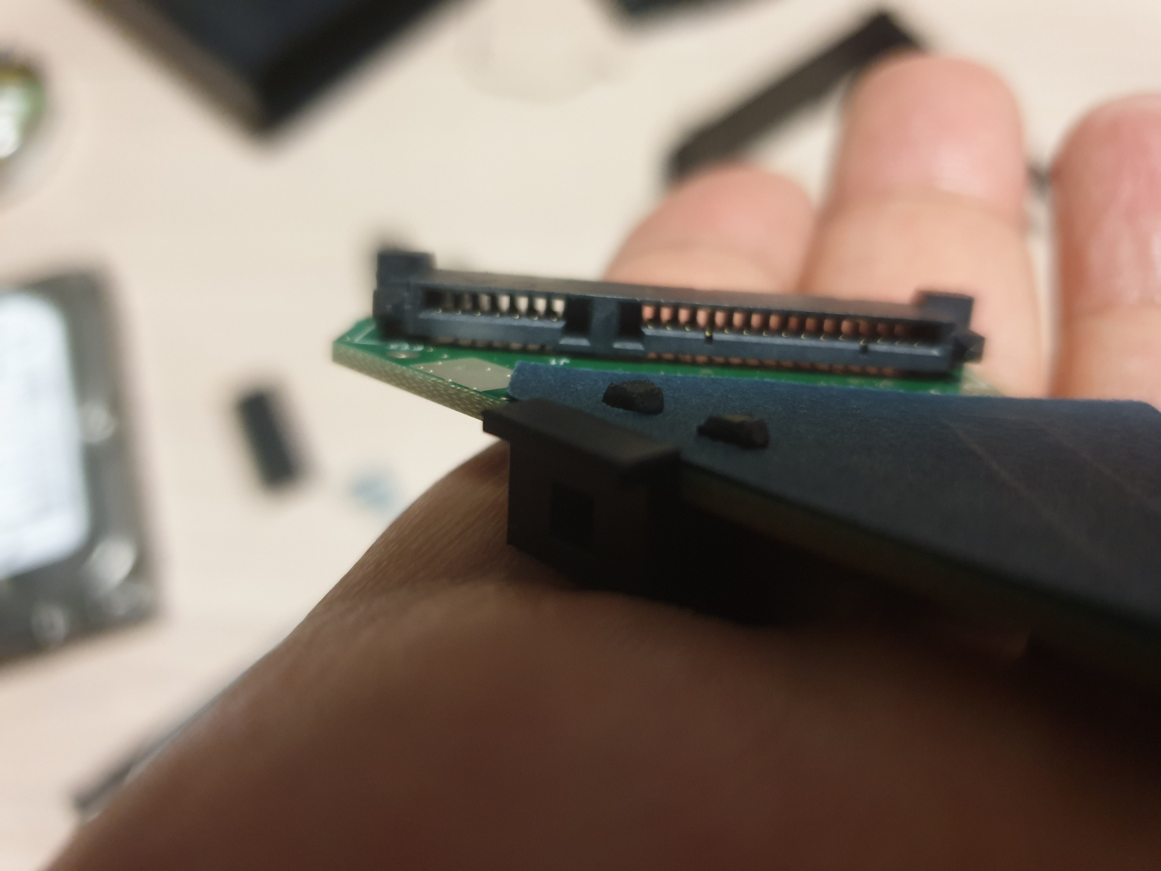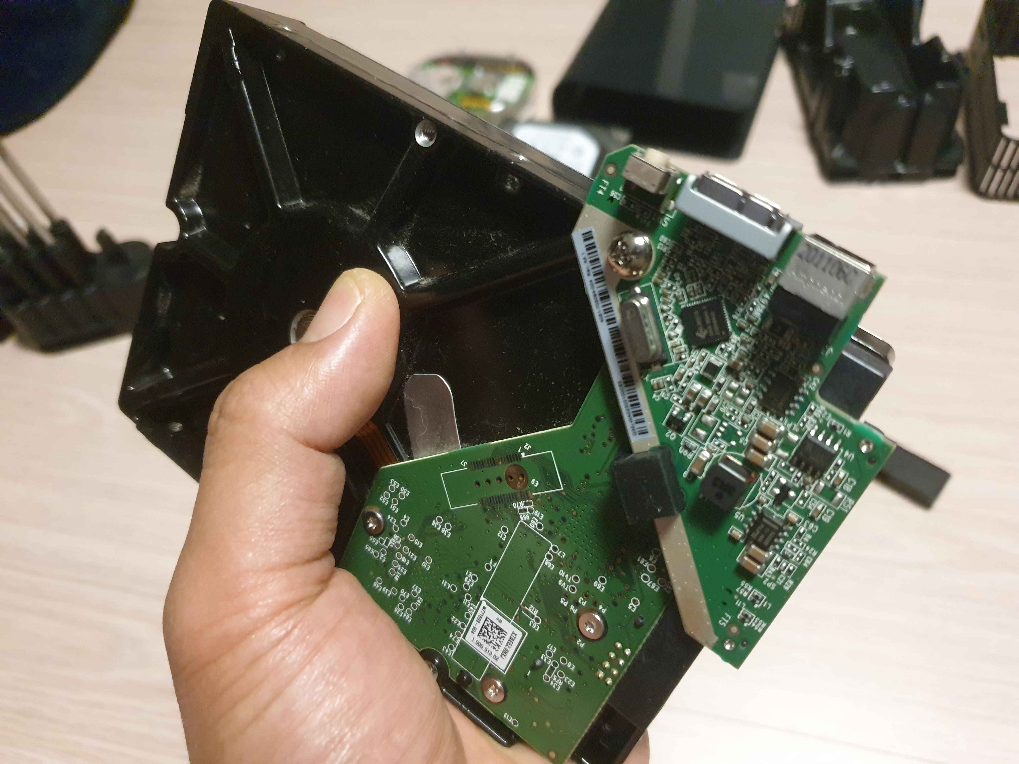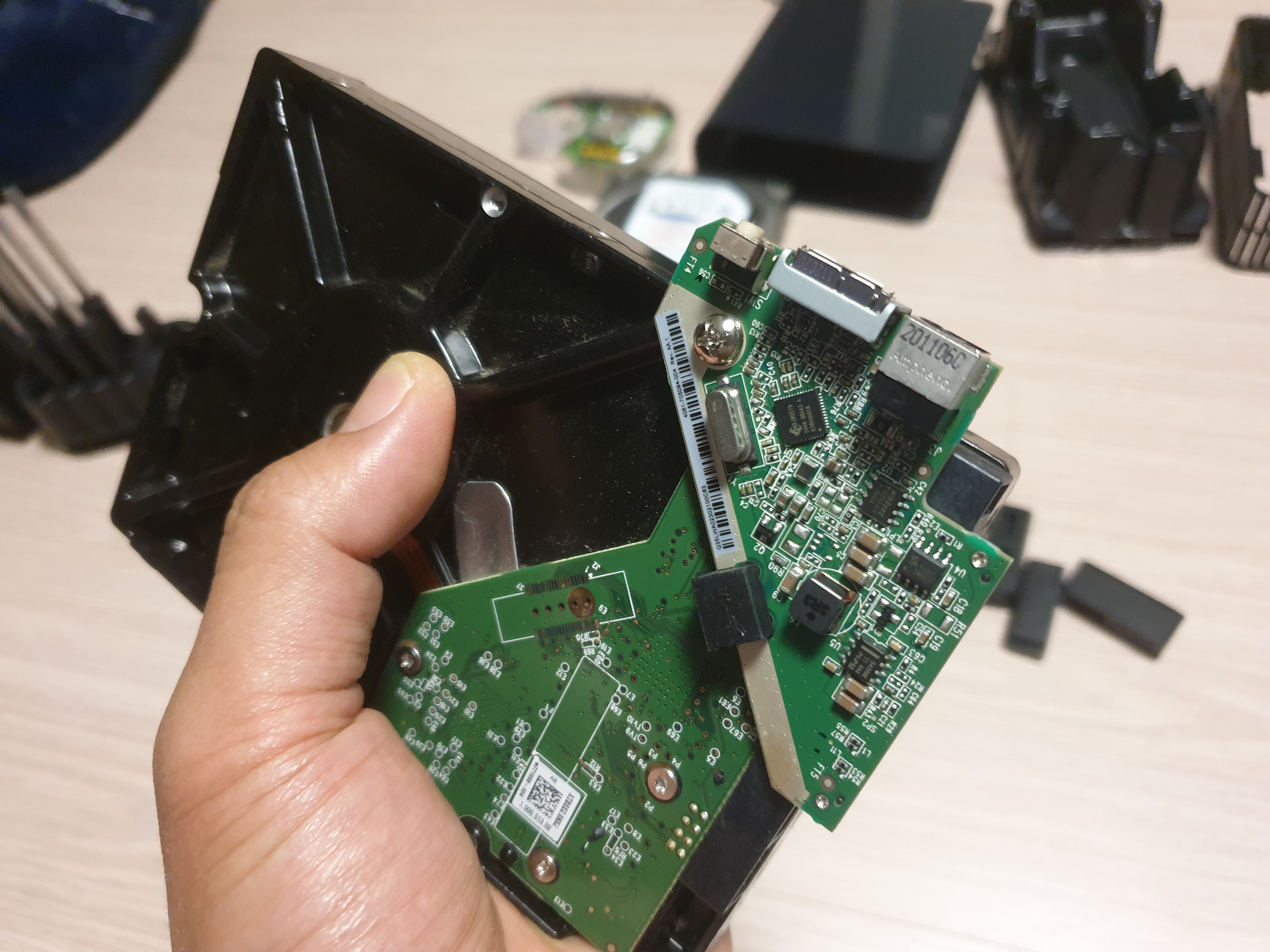기존의 Seagate 하드를 분리했고 본 Western Digital Element 제품을 완전히 분리했을때의 모습. PC에 장착해보자.