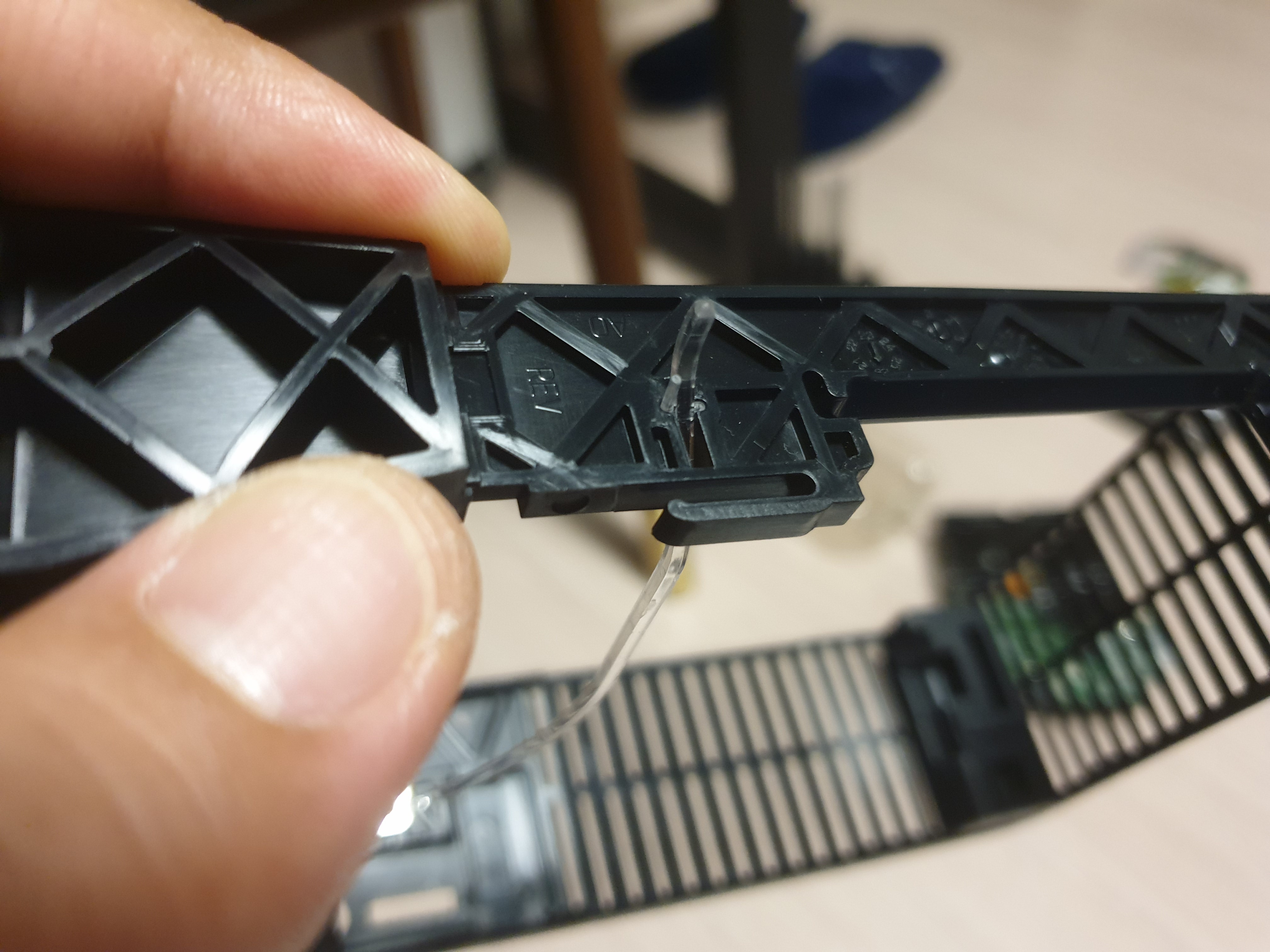 동작 LED를 점멸시켜주는 부분이다. 저 투명한 플라스틱 구조물이 보이시는지? 그걸로 기판에서 점멸하는 램프를 케이스 바깥쪽까지 길게 연장하여 보여주는 역할을 한다. 재밌다.