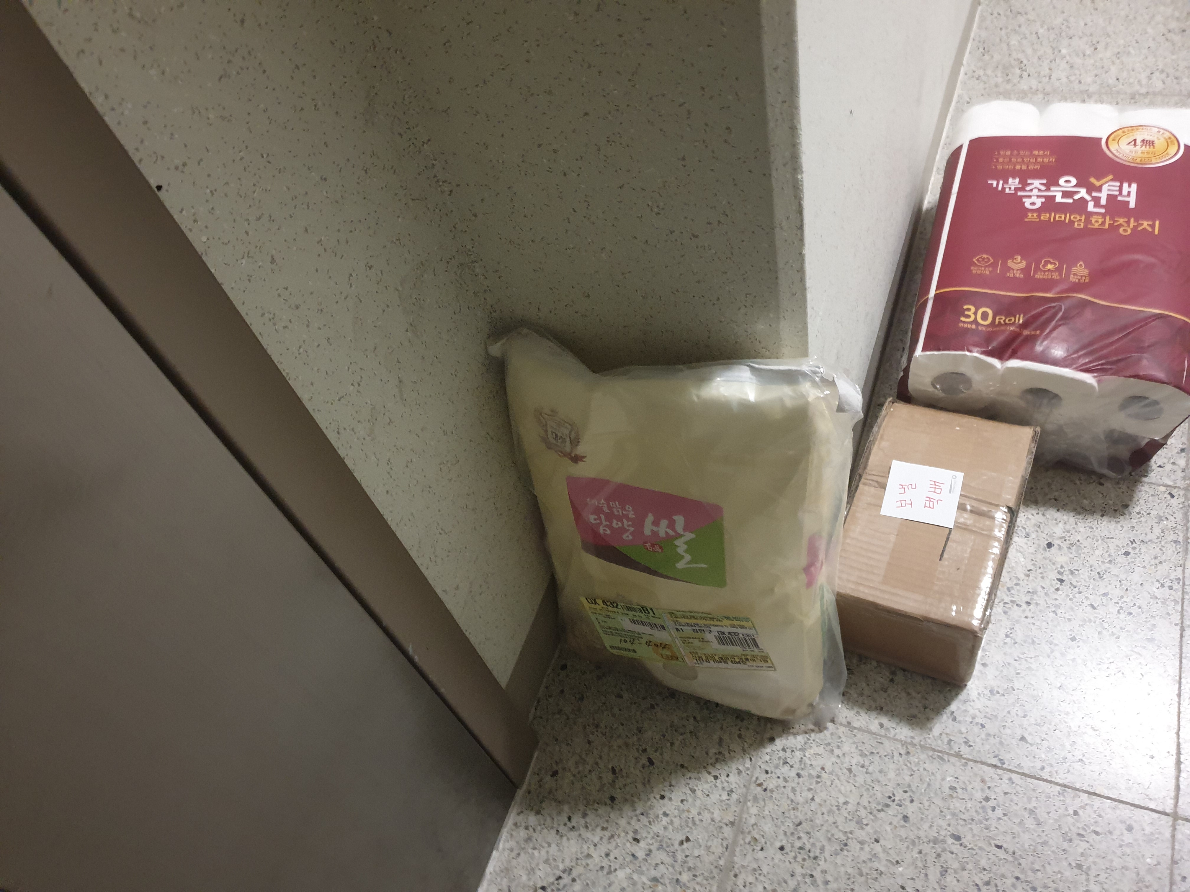 퇴근이다. 번개장터에서 판매가 확정된 집하를 기다리는 택배, 사은품으로 온 화장지, 집의 주식이 되는 쌀 가마니 등이 나를 반긴다.