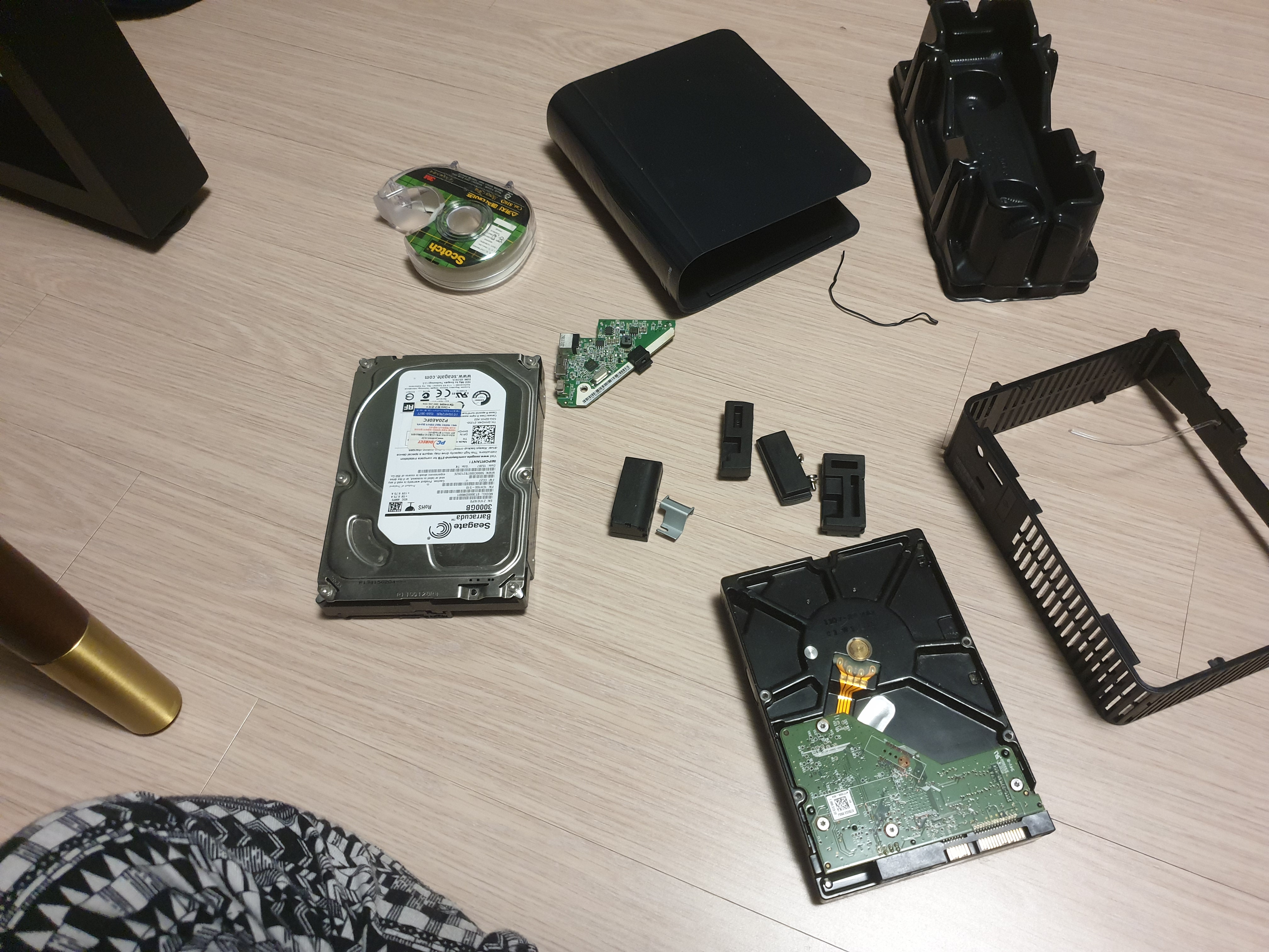 기존의 Seagate 하드를 분리했고 본 Western Digital Element 제품을 완전히 분리했을때의 모습. PC에 장착해보자.