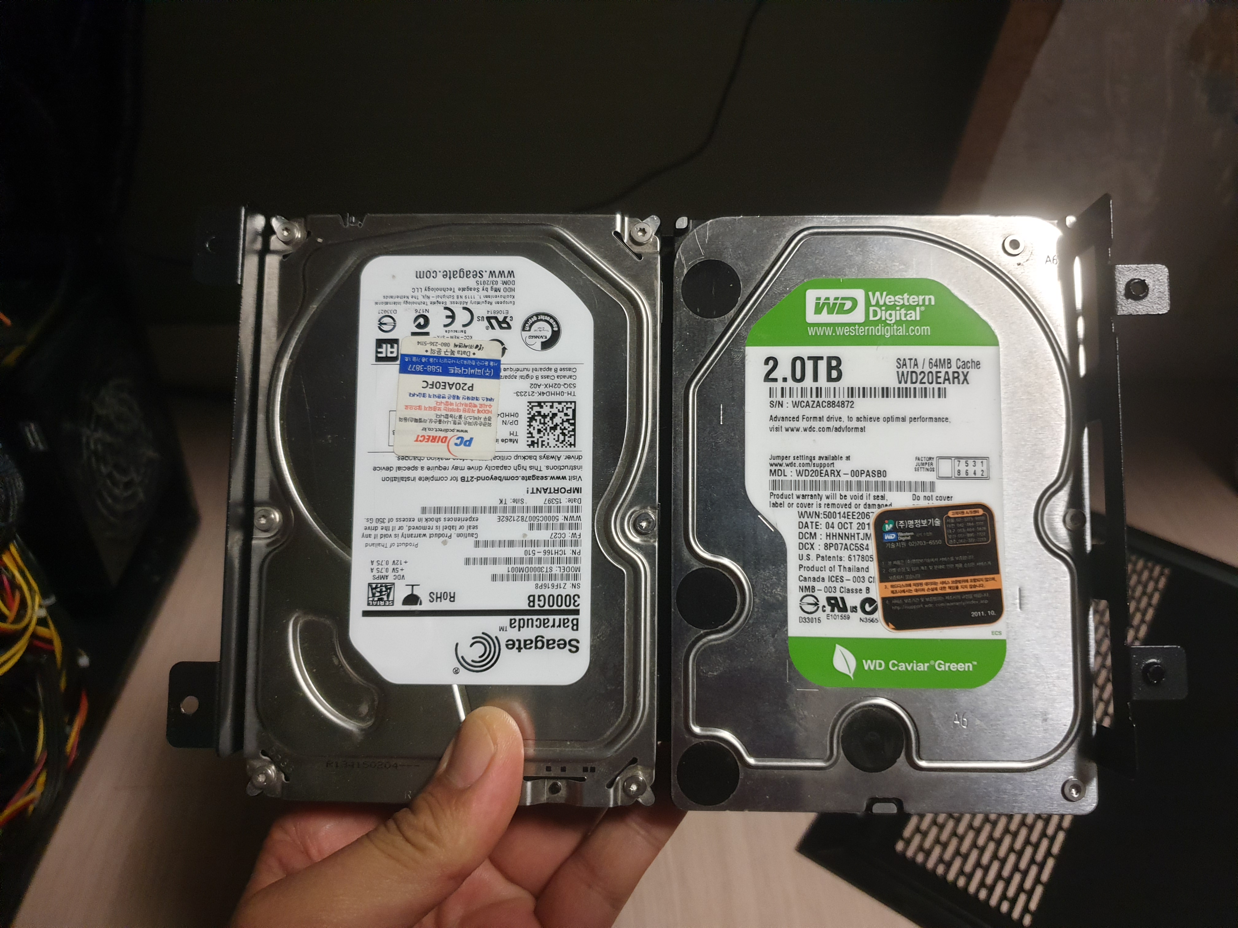 Seagate 3TB하드와 WD의 2TB하드를 떼어냈다. 이젠 안녕. 모두 정리할 예정이다. 2TB + 3TB 하드였는데 구석으로 잘 정리해두고