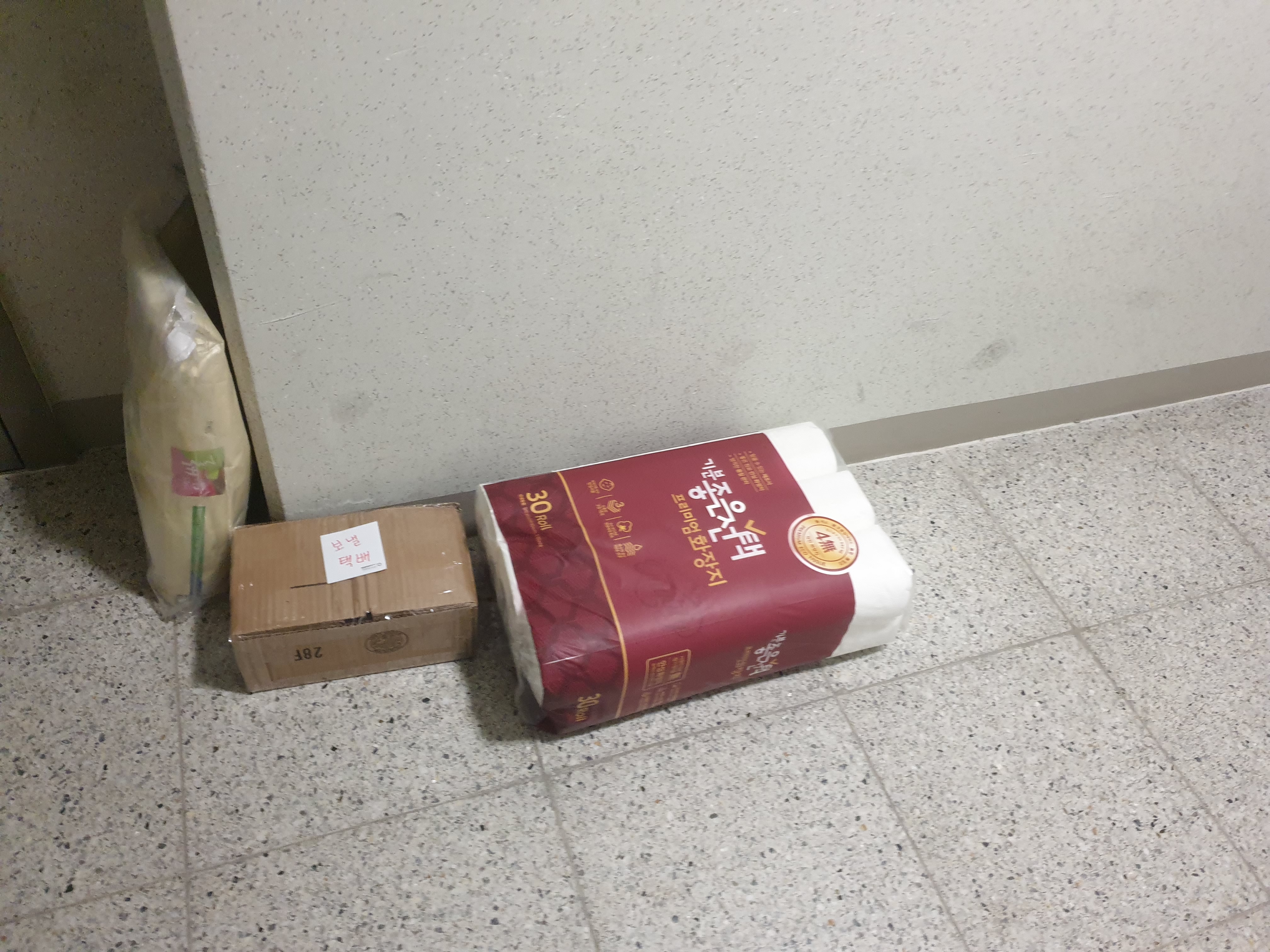 퇴근이다. 번개장터에서 판매가 확정된 집하를 기다리는 택배, 사은품으로 온 화장지, 집의 주식이 되는 쌀 가마니 등이 나를 반긴다.