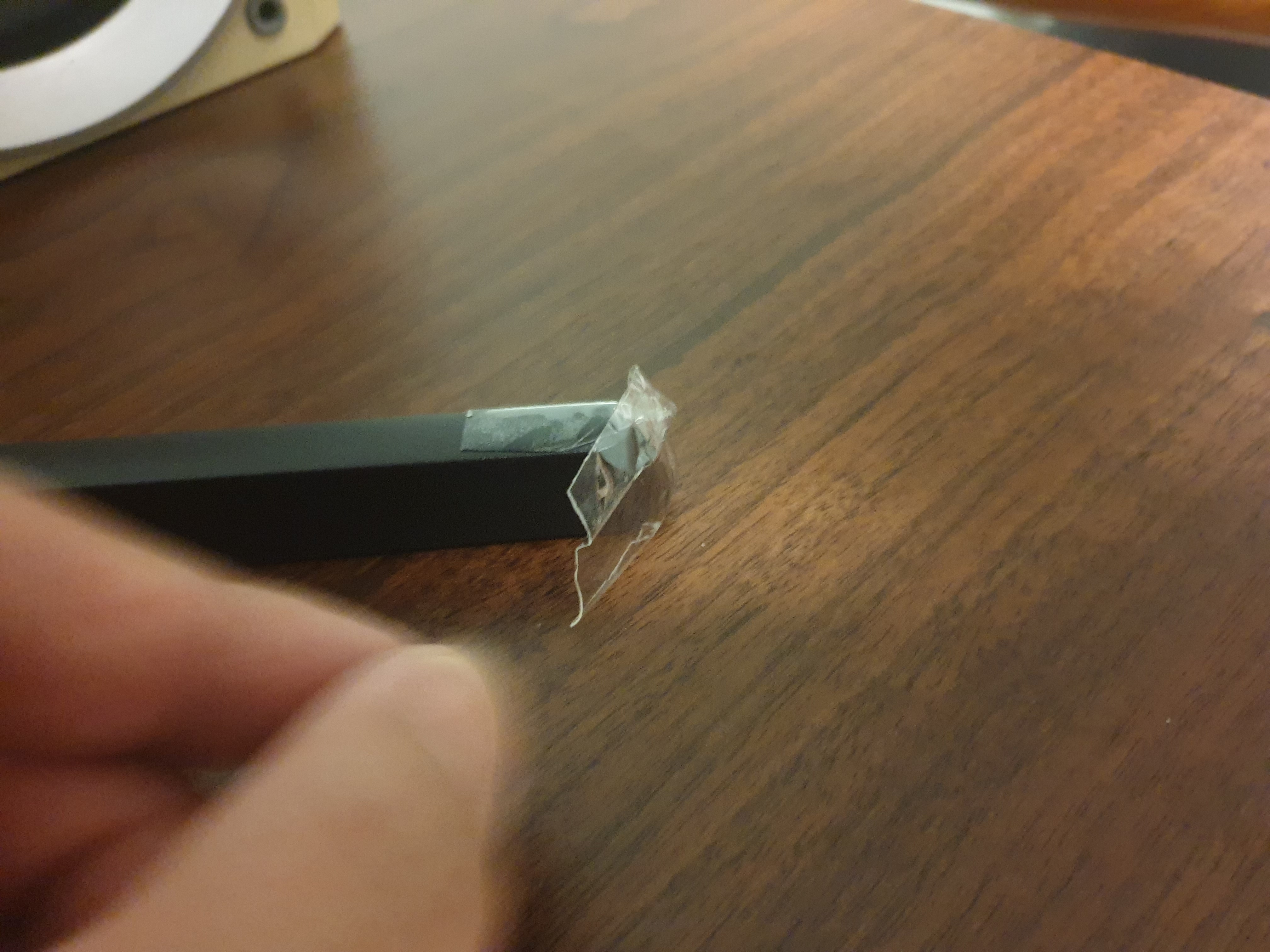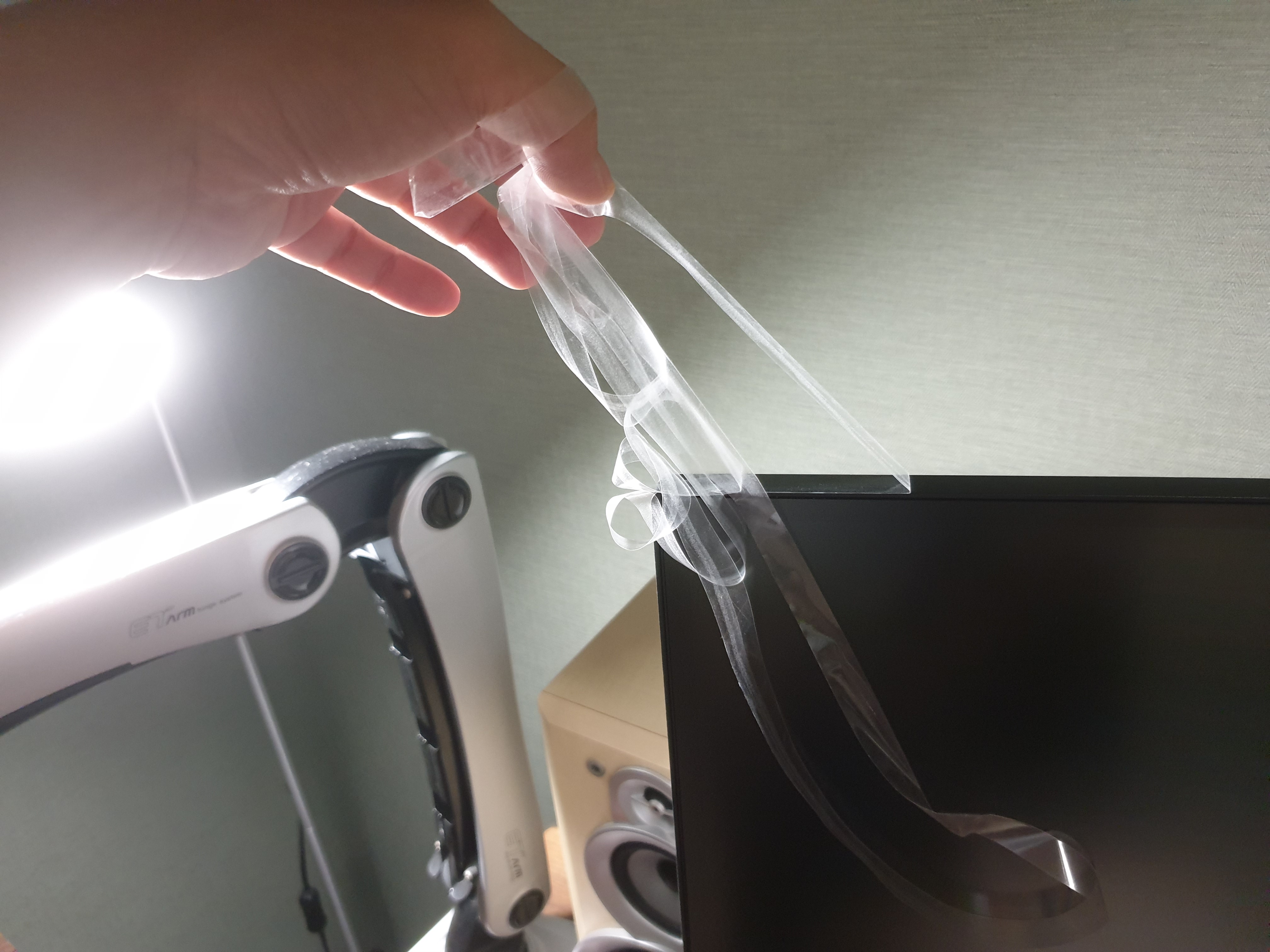 모니터 스탠드를 보호하기 위해 붙어있는 스티커를 제거한다.