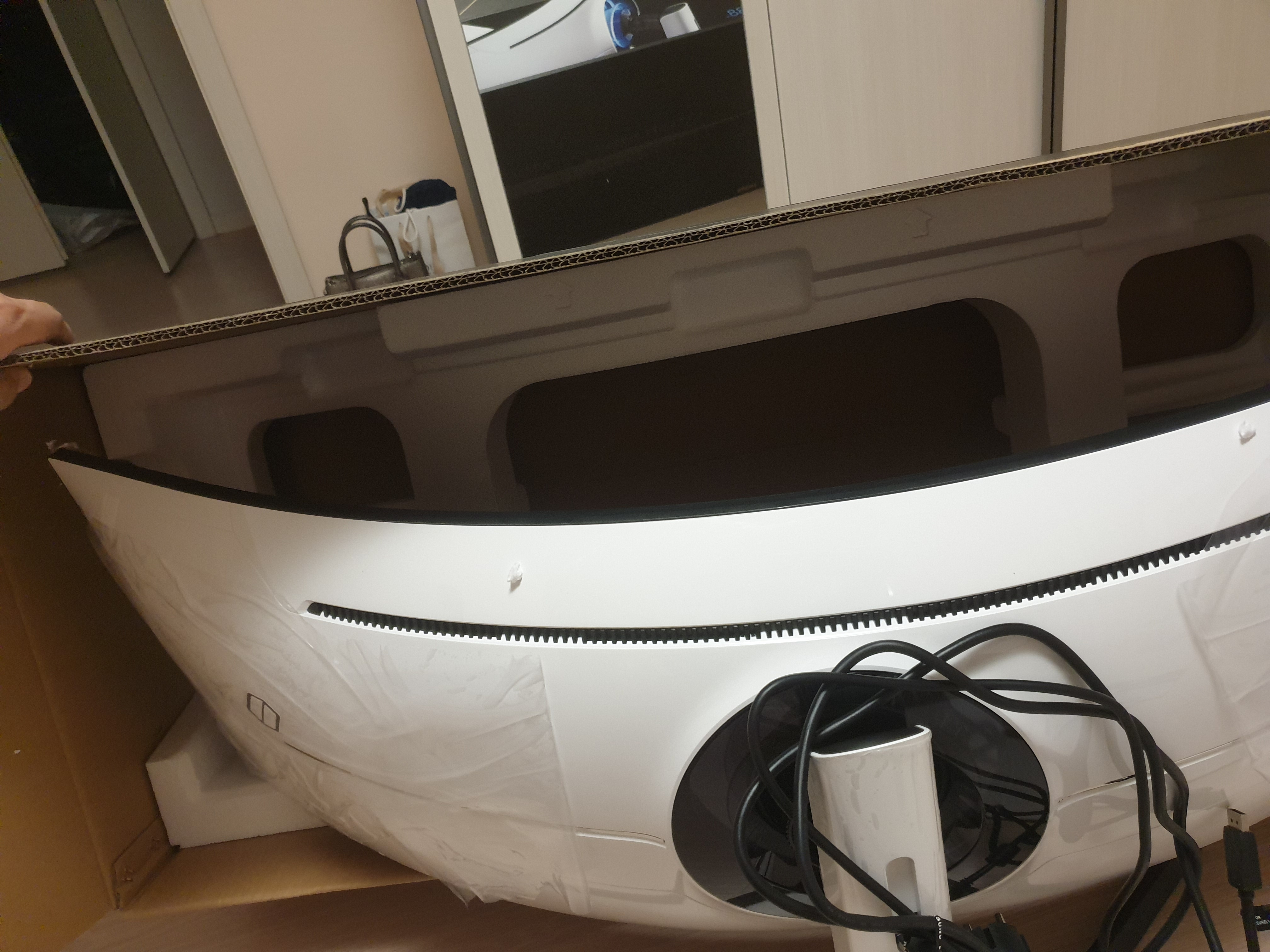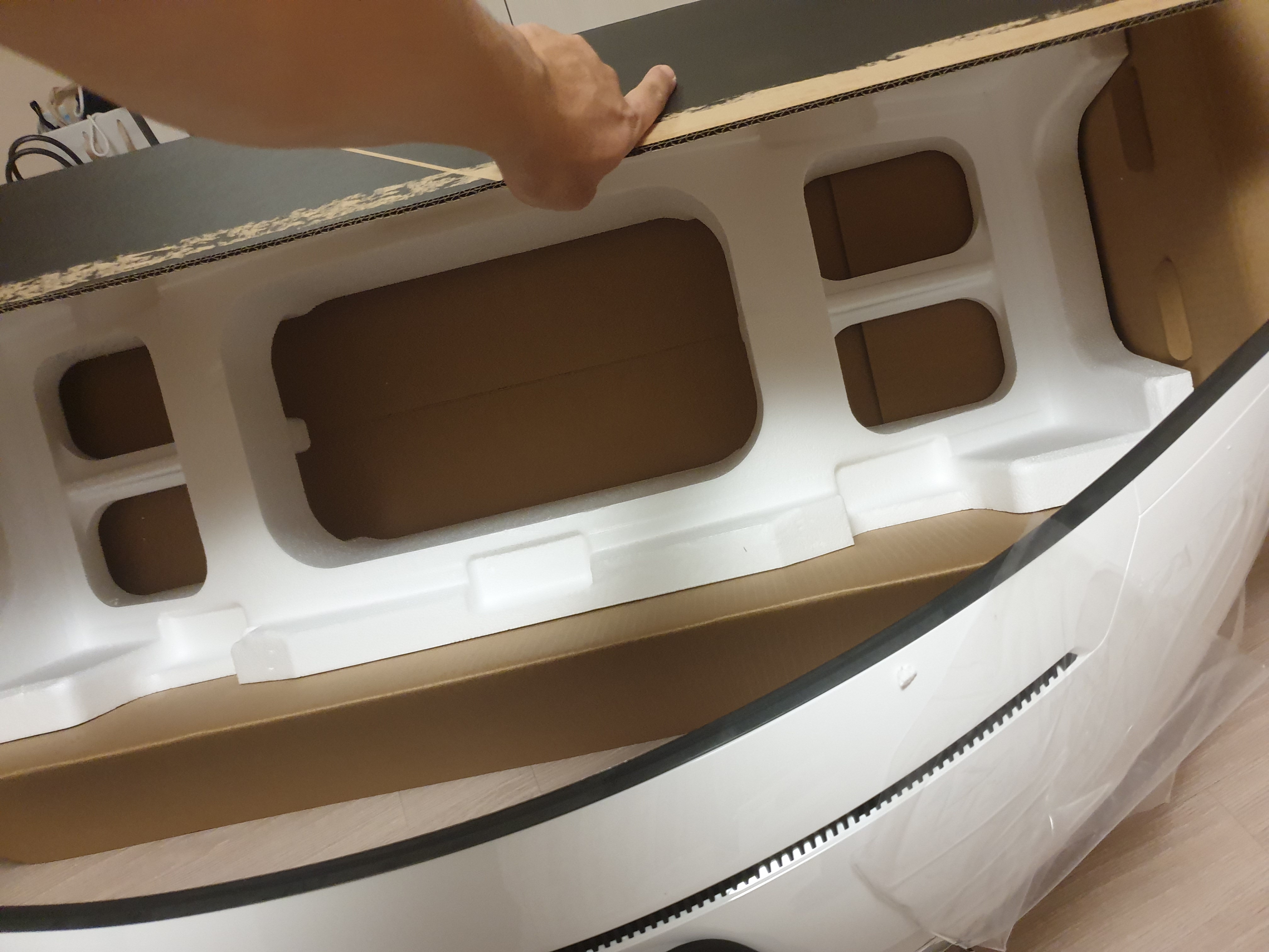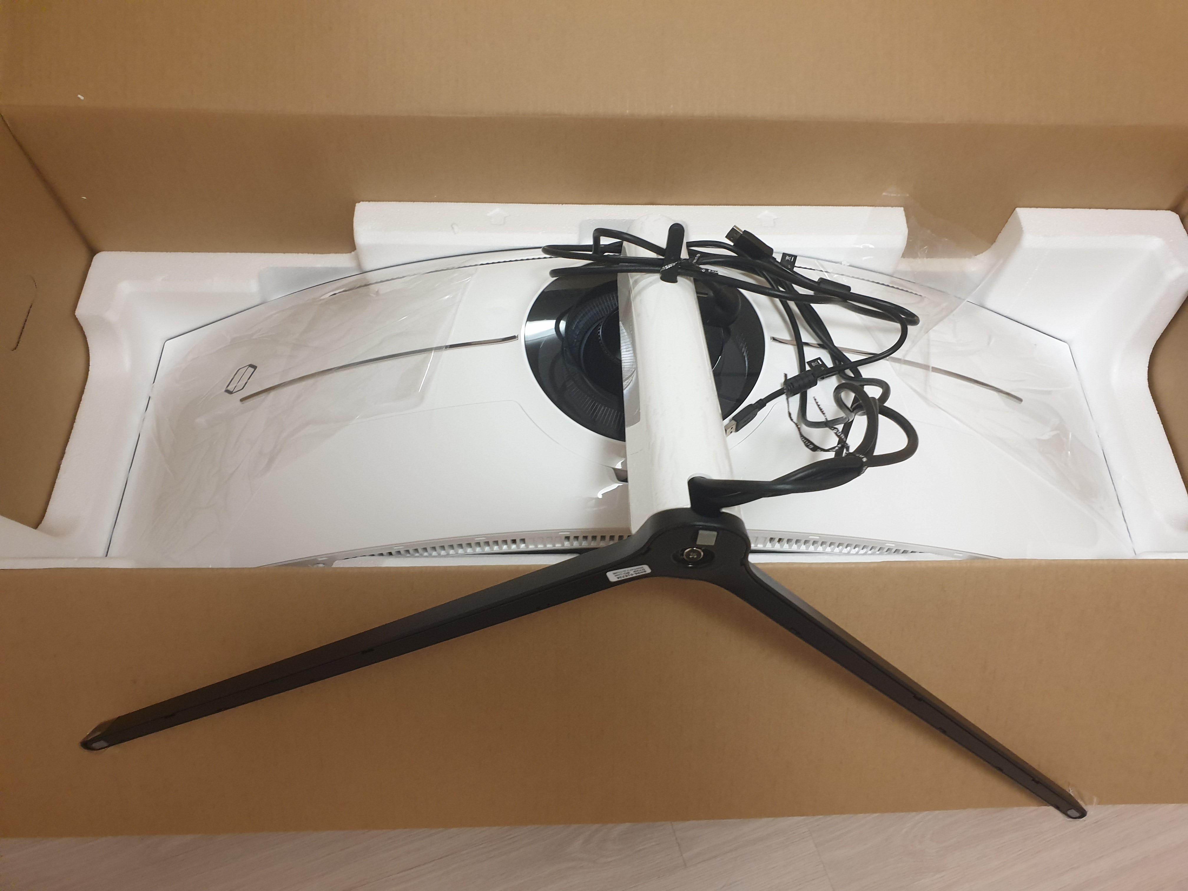 이건 꽤 중요한데 최근의 커브드 모니터를 조립할때는 뒤집은 상태에서 스탠드까지 결합을 마치고 최종적으로 세우는 것이 안전하기 때문이다.