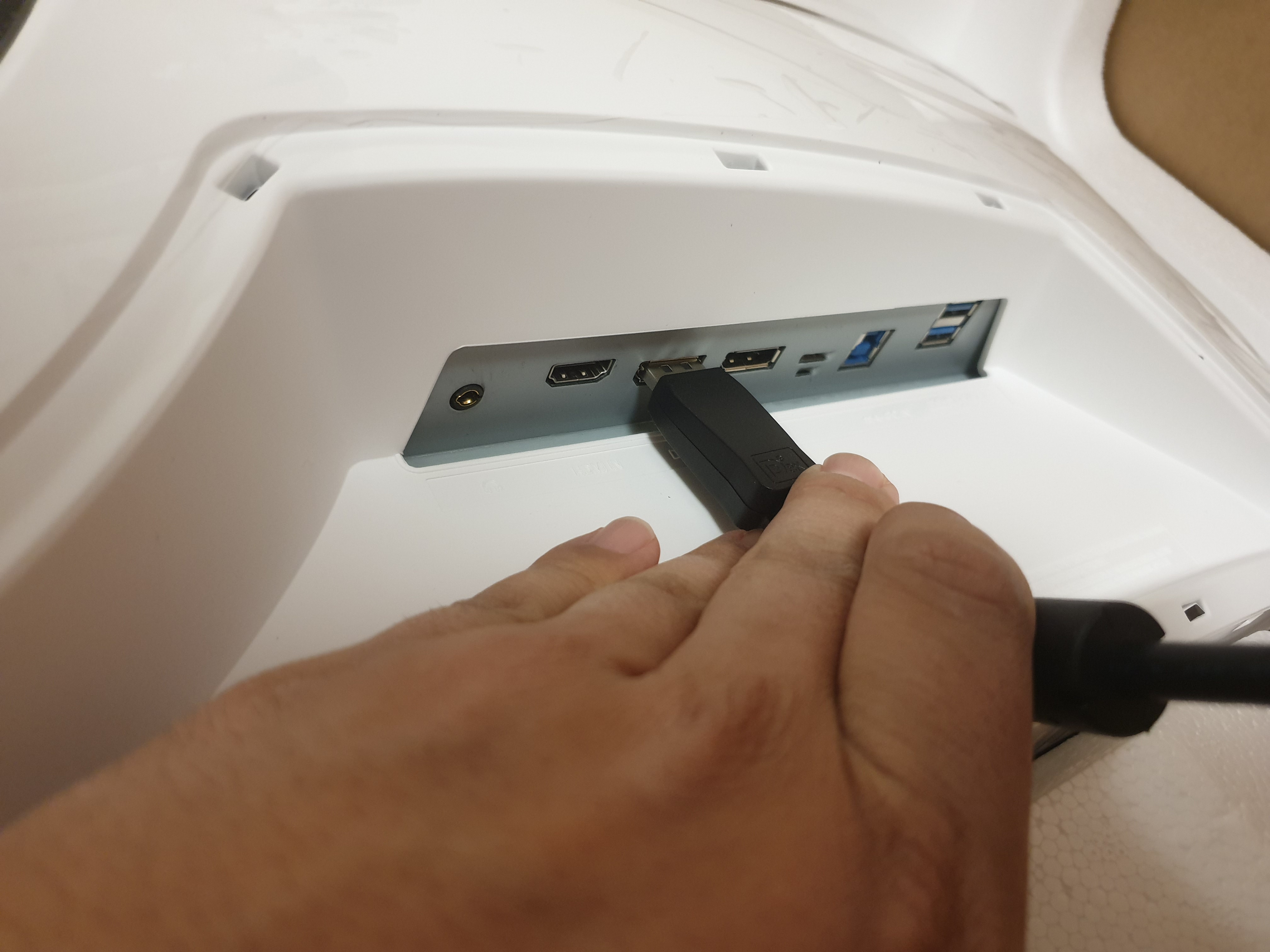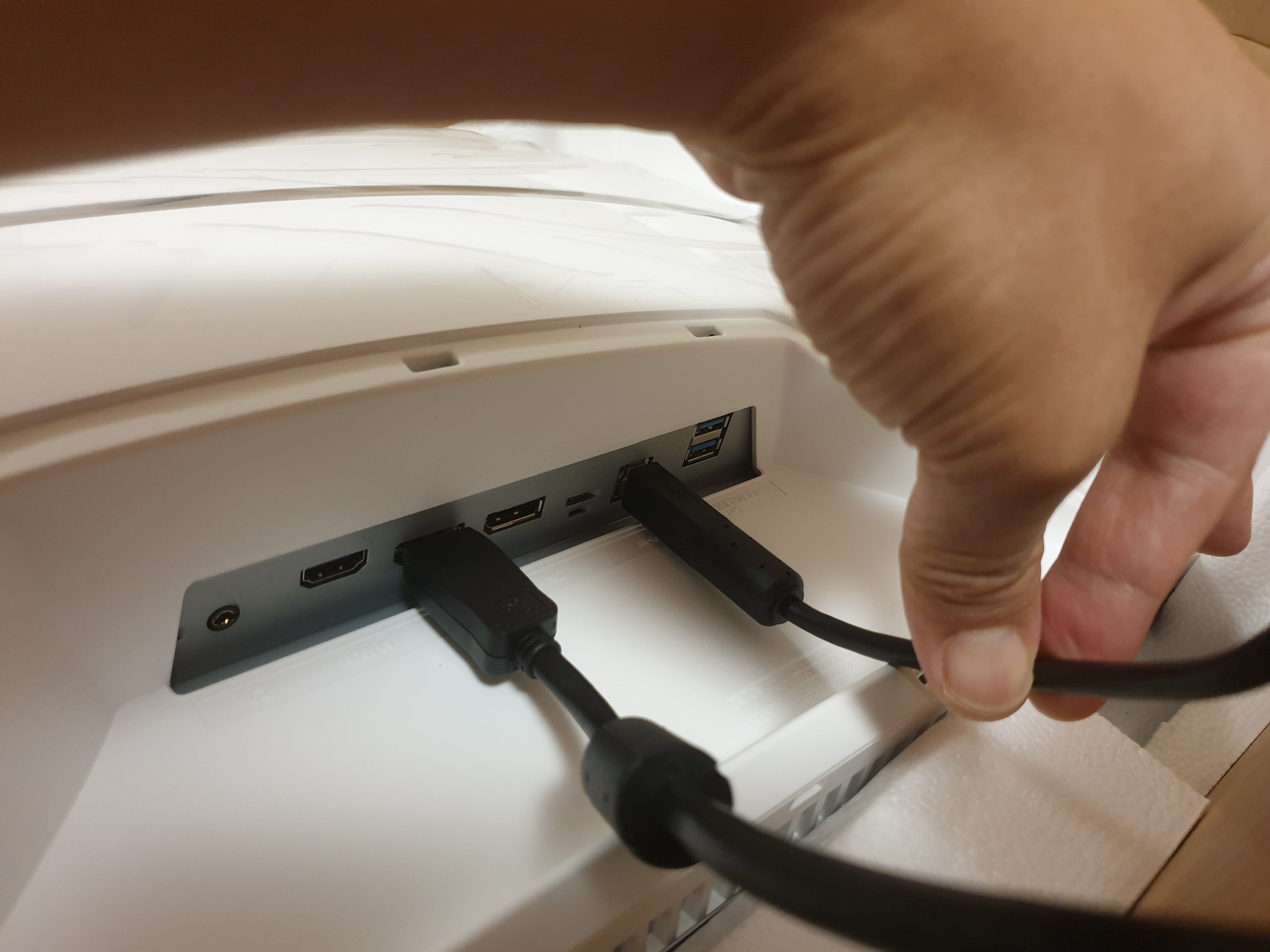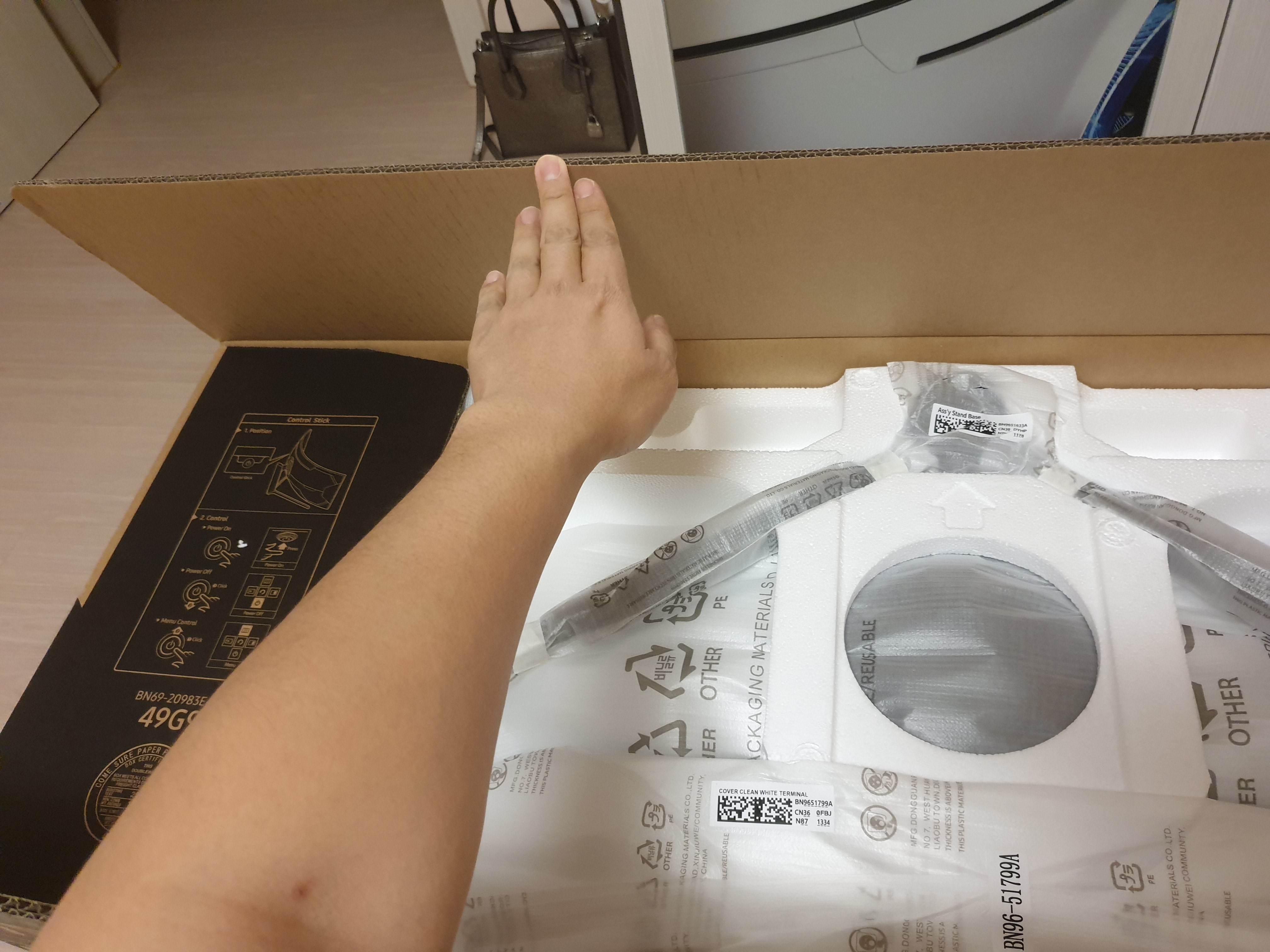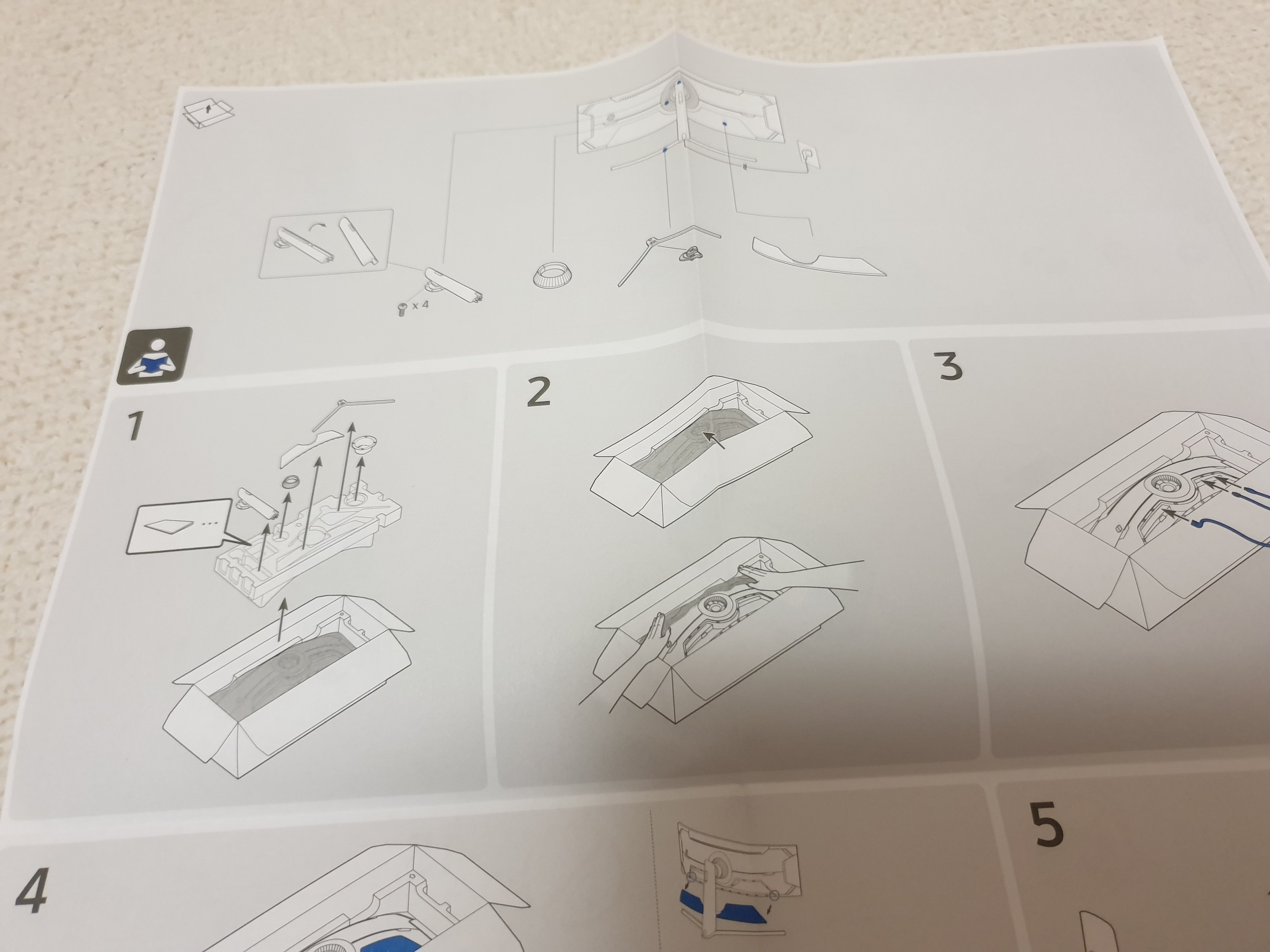 이건 꽤 중요한데 최근의 커브드 모니터를 조립할때는 뒤집은 상태에서 스탠드까지 결합을 마치고 최종적으로 세우는 것이 안전하기 때문이다.