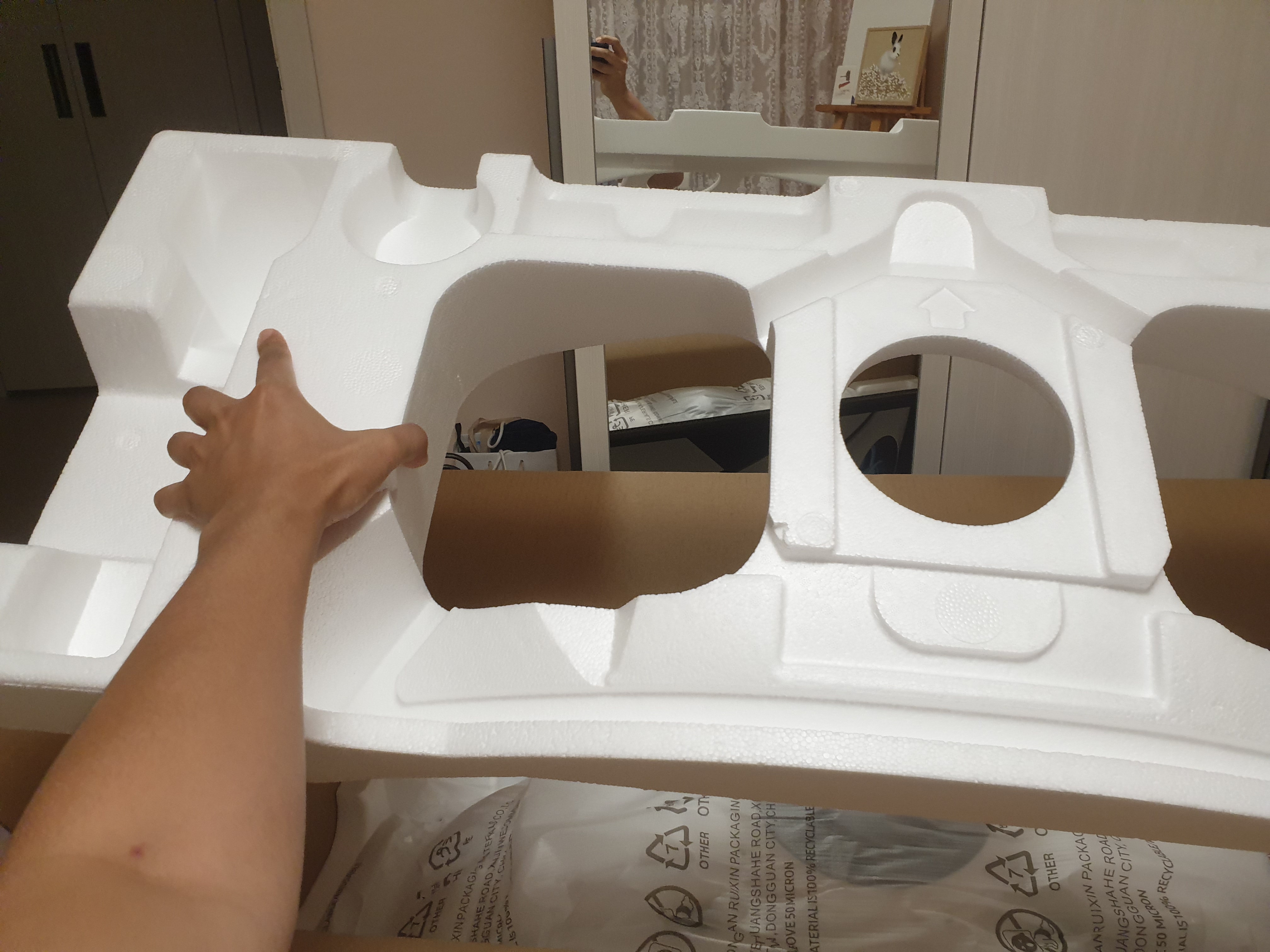 스티로폼을 들어낸다.