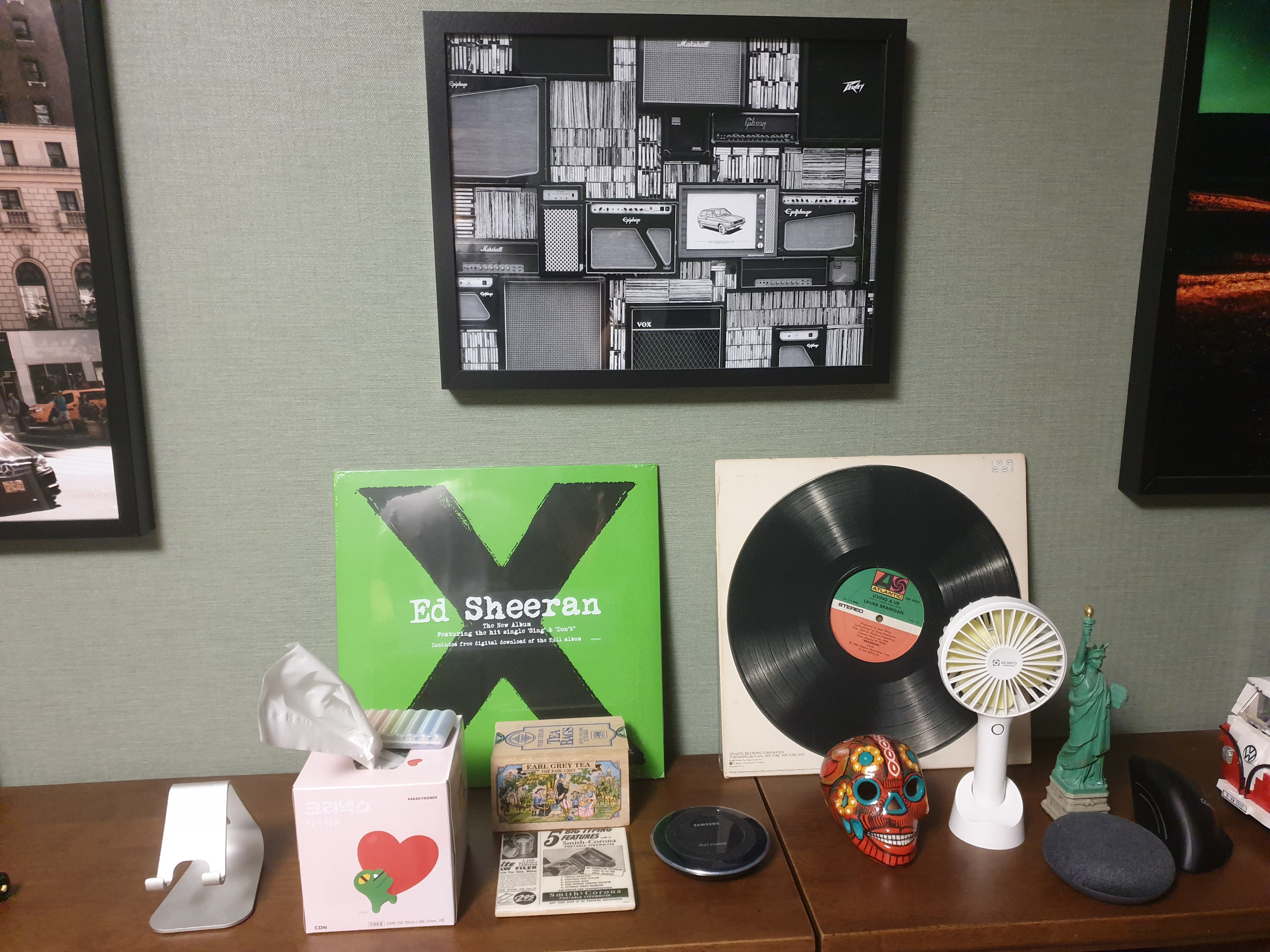 쓰고있던 책상위의 짐들은 잠시 뒤쪽의 책장위로 옮겨놓는다.