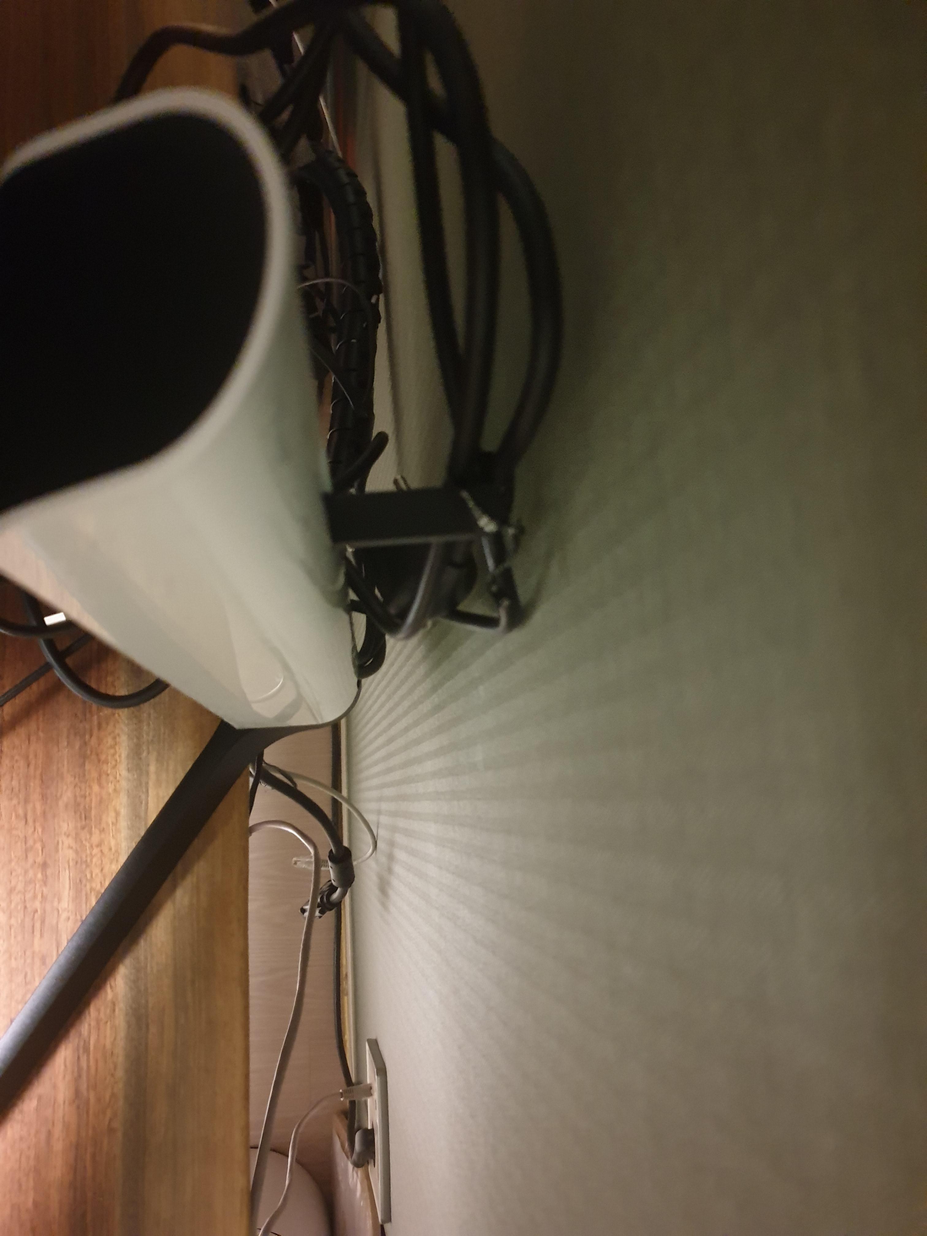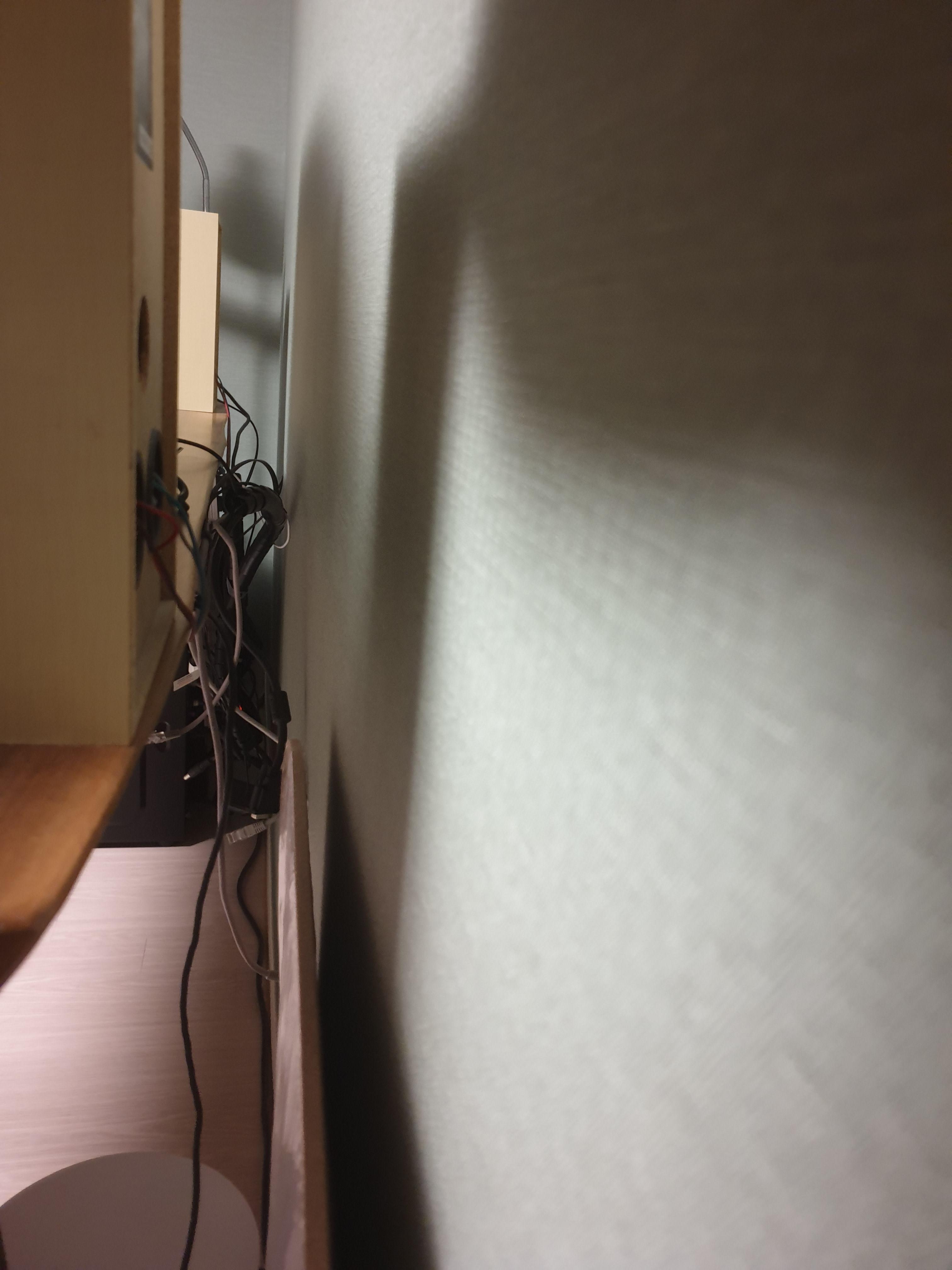 모니터 받침대의 깊이가 꽤 되므로 책상을 앞쪽으로 최대한 당겨서 책상과 벽면사이에 공간을 확보한다. 이제 모니터를 깊숙히 붙일 예정이다.