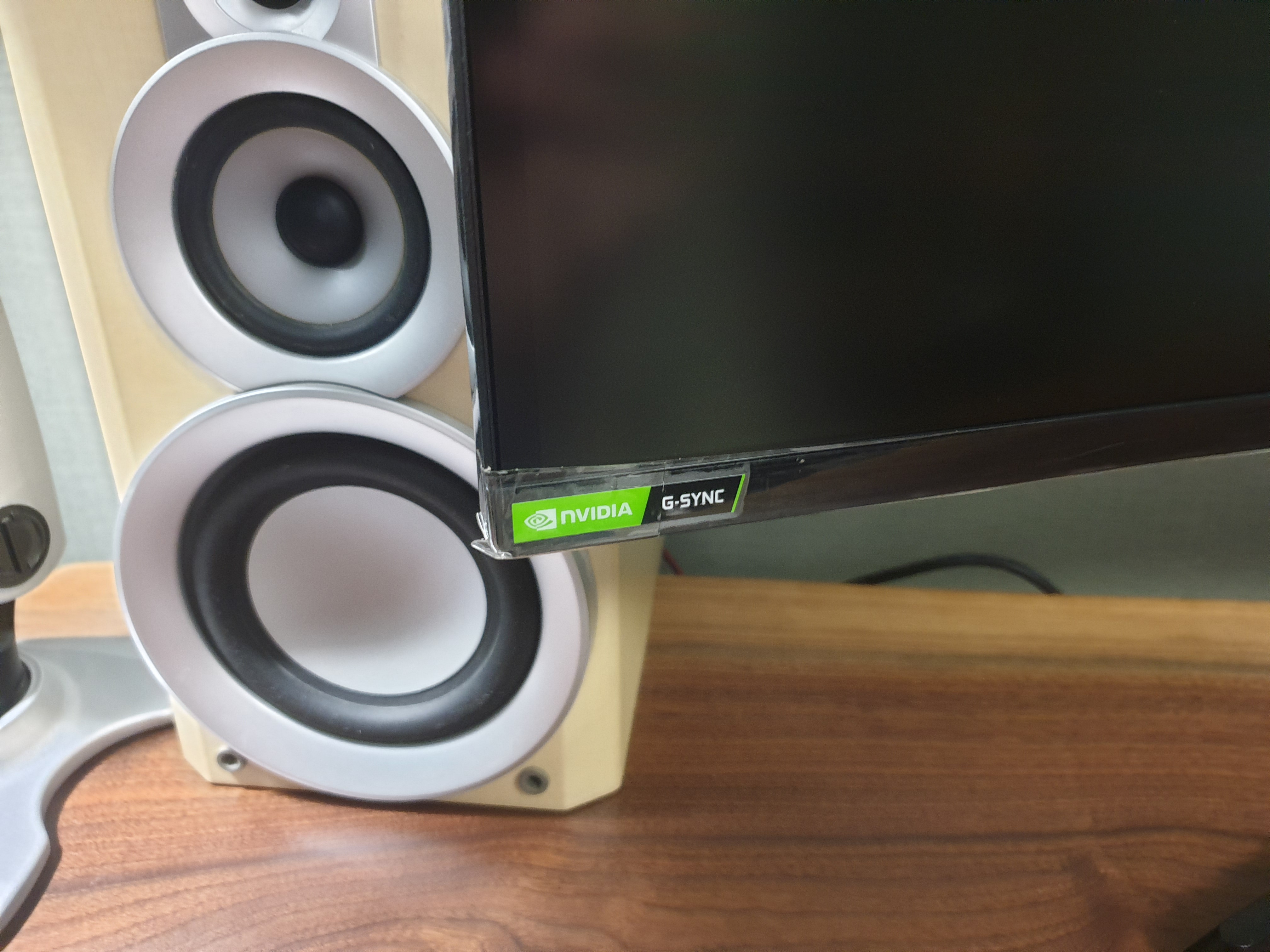 NVIDIA G-SYNC를 완벽하게 지원하지 않는다. 대신 NVIDIA G-SYNC Compatible 규격을 가지고 있다. 모니터 4코너를 감싸고 있는 보호비닐을 마저 분리한다.