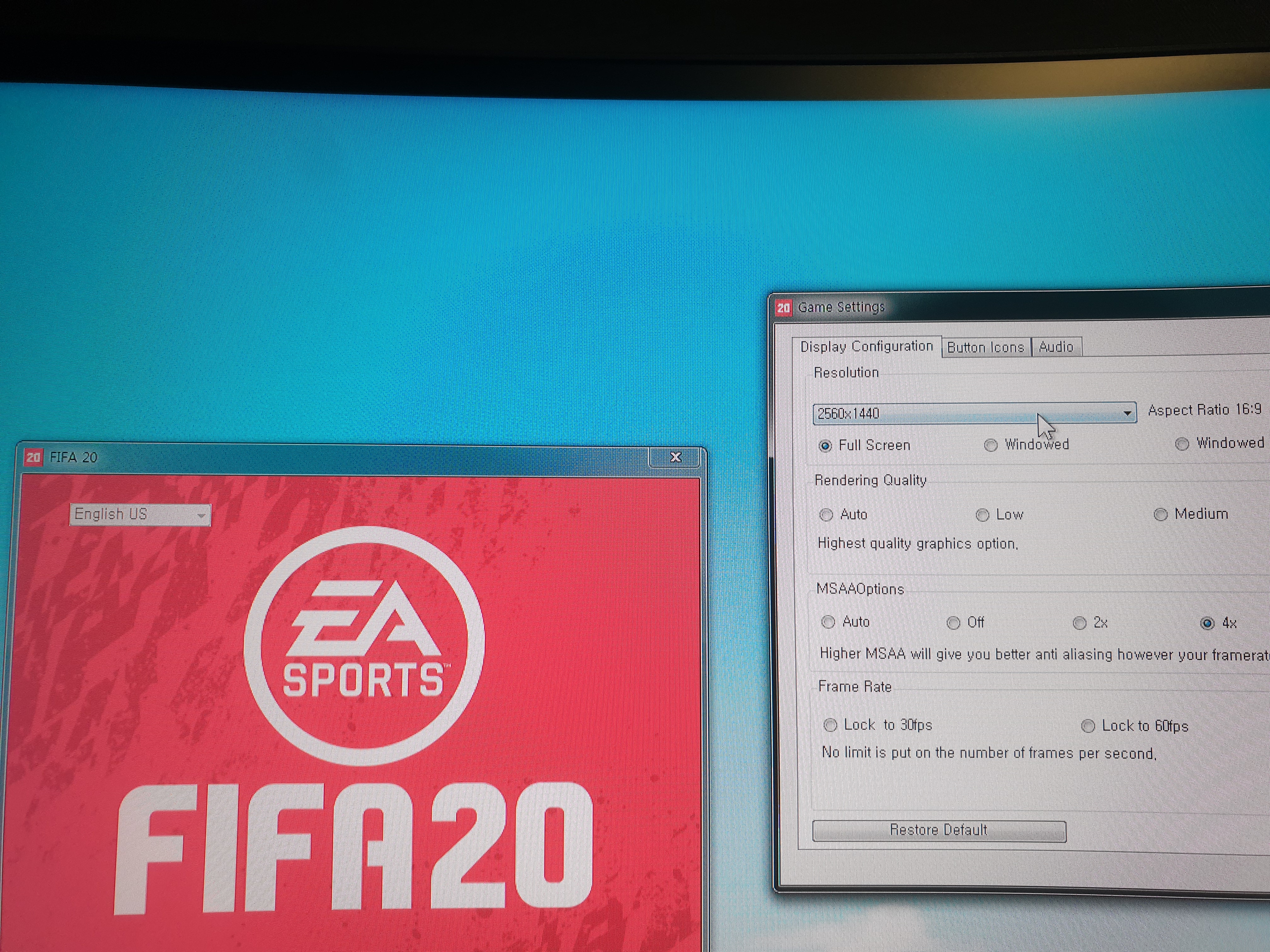 피파 20은 5120x1440해상도를 지원한다.