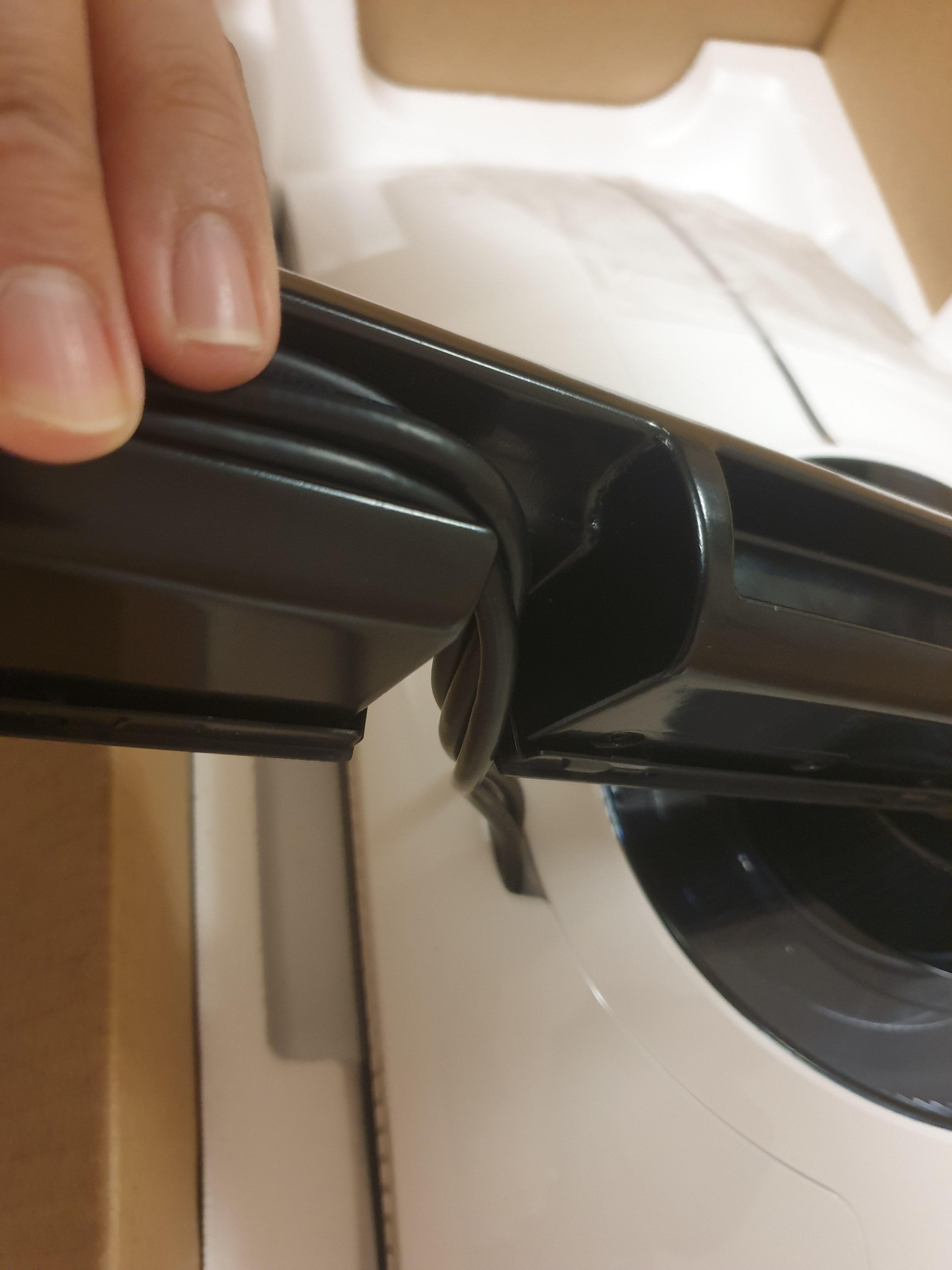 케이블은 하단부에 뒤로 돌리는 부분으로 뽑아내고 흰색 뚜껑을 씌워주면,