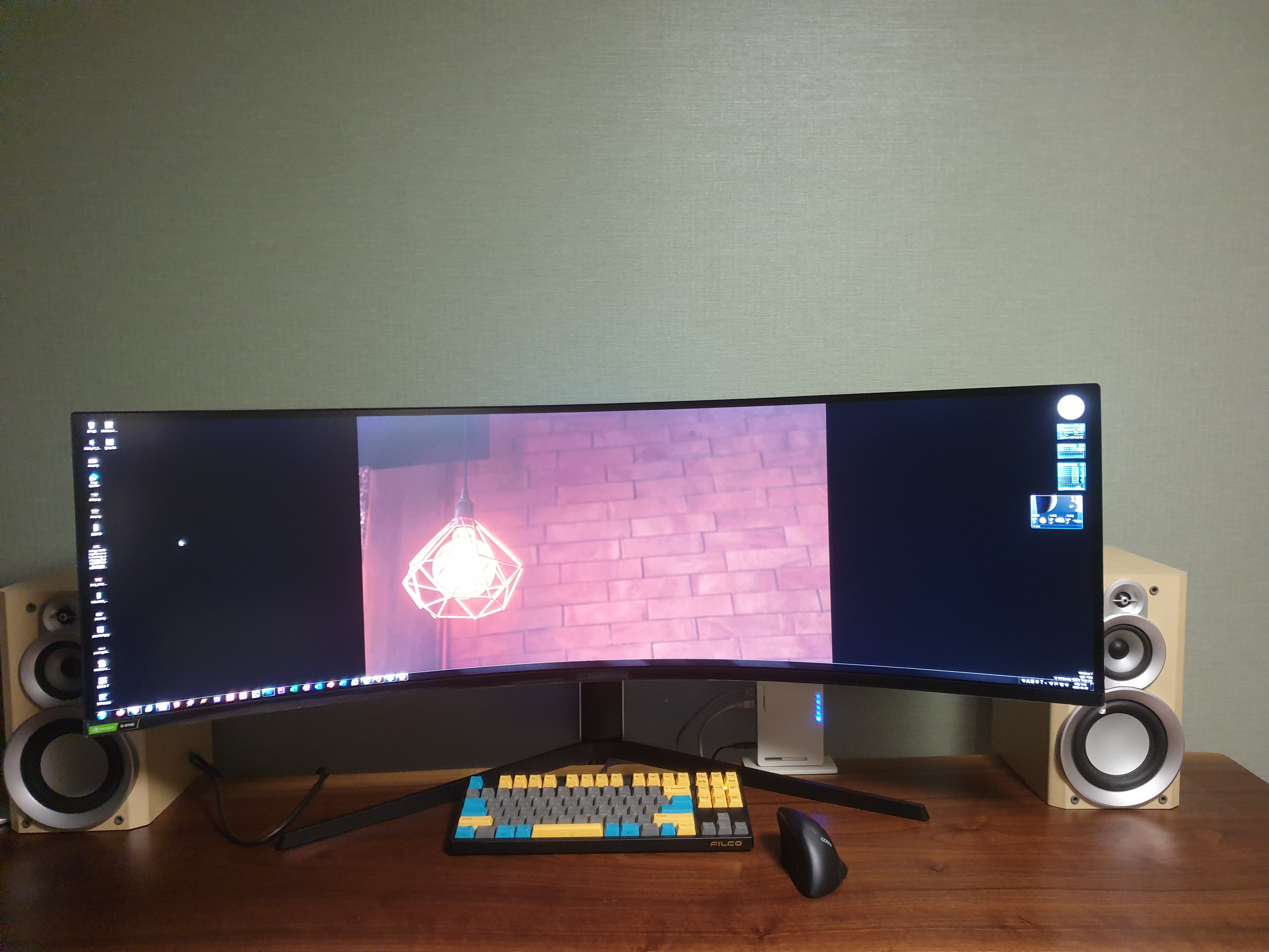 하지만 고 주사율을 지원한다는 것. 그리고 27인치 2560x1440 을 두개 이어붙인것에 가운데 선이 없다는 것. 이것 자체가 큰 차이를 만들어내는 것은 아닐까? 또한 1000R의 곡률이 이 가로로 광활한 화면을 시야에 묶어주어 집중력을 높여주지 않을까?!
