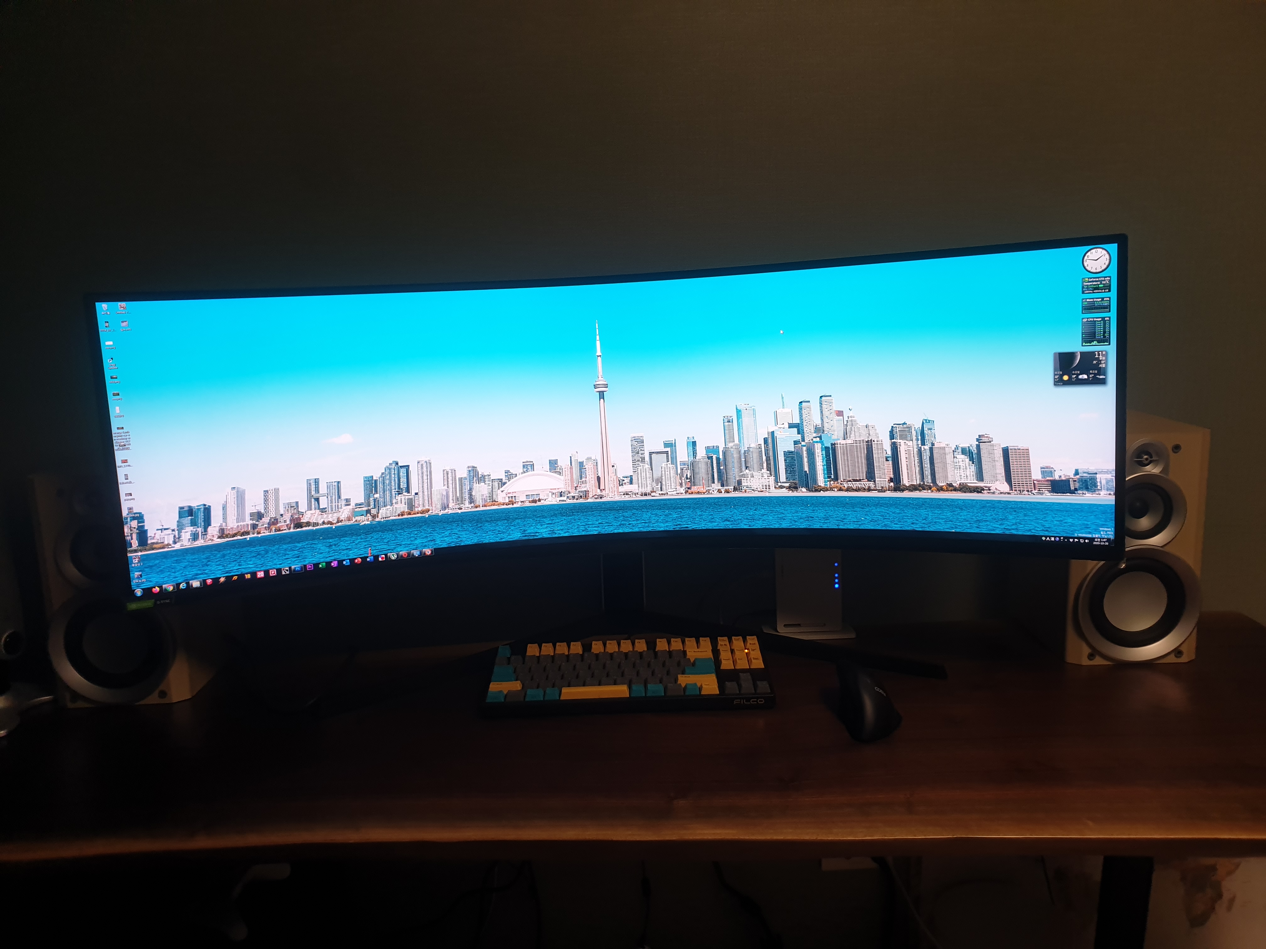 예전에 쓰던 바탕화면을 기억하는지? 그 바탕화면의 정확히 두배 해상도가 되었으니 좌우로 레터박스가 생기는건 당연하다. 모니터가 너무 넓어서 이 공간들을 모두 아이콘으로 채워보고싶다는 생각마저 든다.